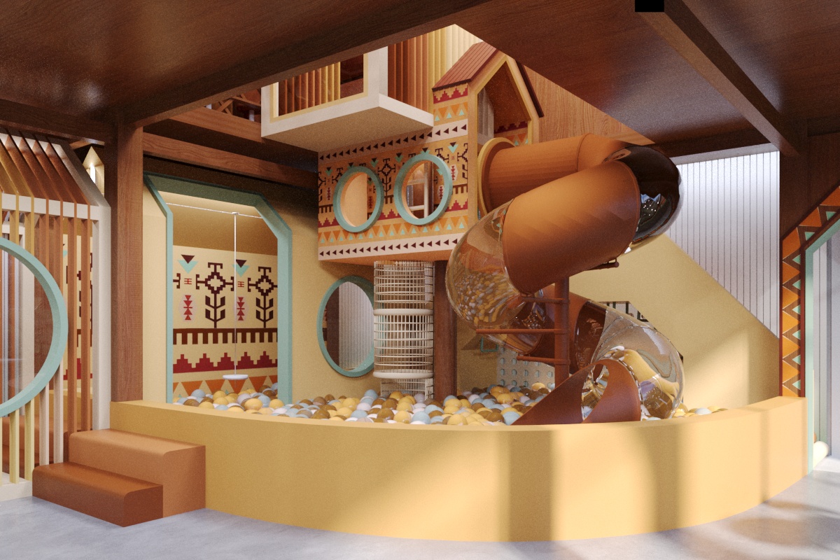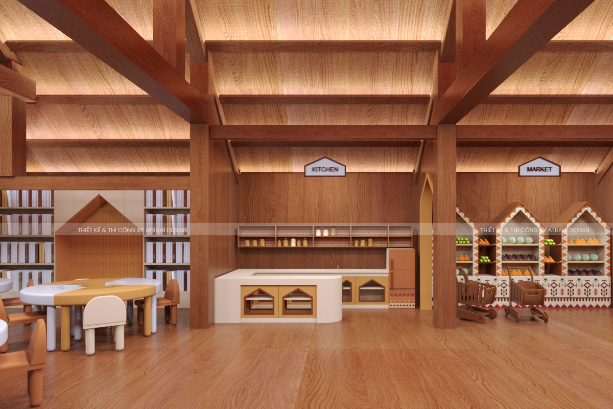 Là một công ty với nhiều năm kinh nghiệm cùng đội ngũ thiết kế tài năng, kinh nghiệm phong phú Atrahi Design đã thực hiện thiết kế và thi công dự án trong 35 ngày. Nhân viên của đơn vị kết hợp khéo léo giữa yếu tố hiện đại, truyền thống với những vật liệu thân thiện môi trường đáp ứng nhu cầu giải trí của trẻ em mang đến sự thoải mái cho cả gia đình.