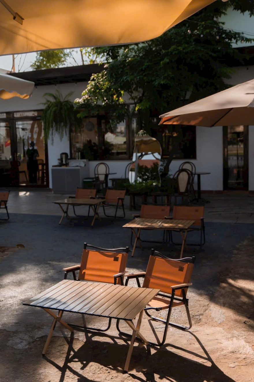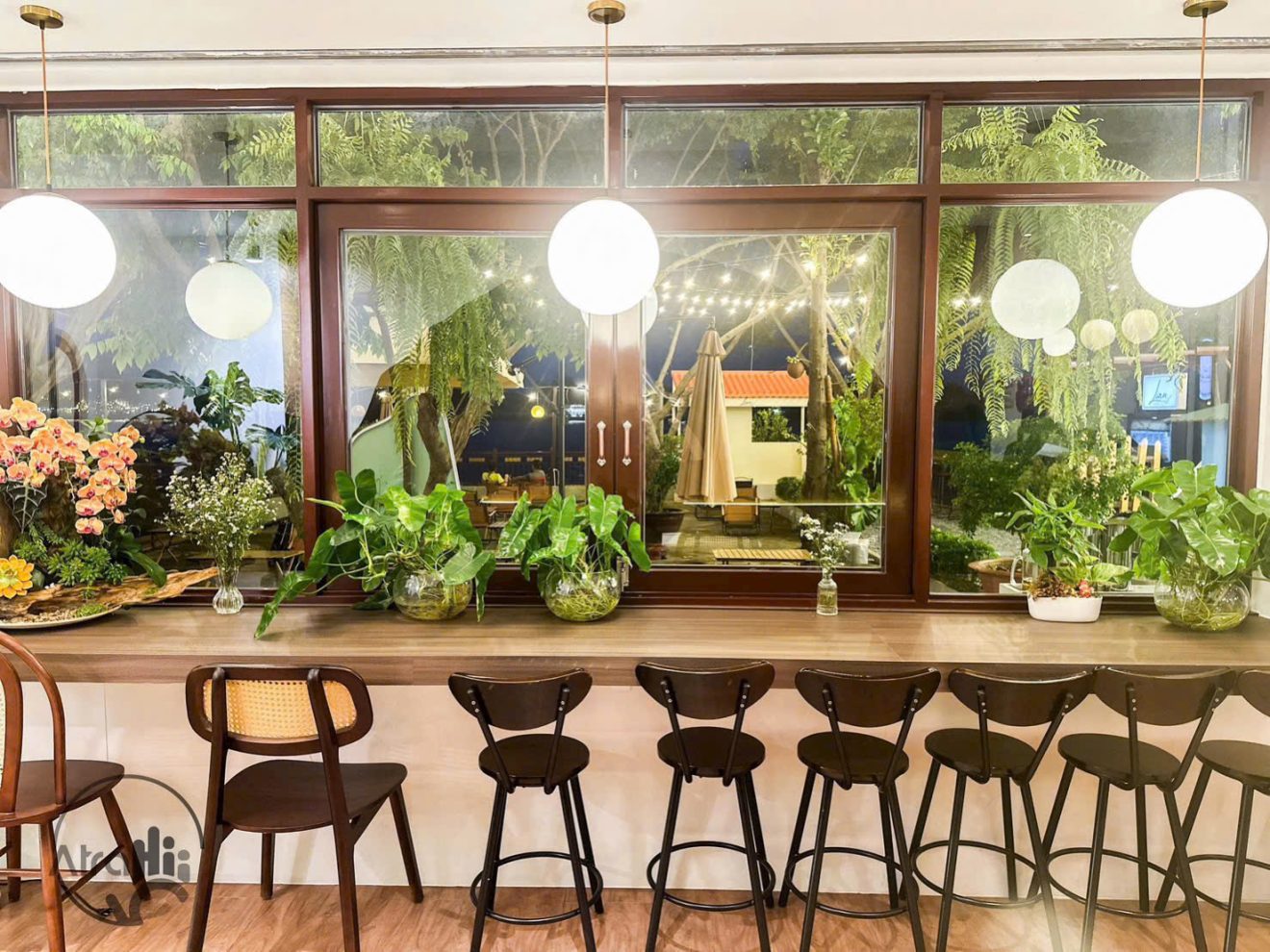 Sân Vườn Bên Sông: Đây là linh hồn của quán. Khu vực ngoài trời được bao phủ bởi tán cây xanh mát, tạo nên một bức màn che chắn tự nhiên. Khách hàng có thể thư thái ngắm nhìn mặt sông lấp lánh, tận hưởng không khí trong lành và cảm nhận làn gió mát rượi 💨 .