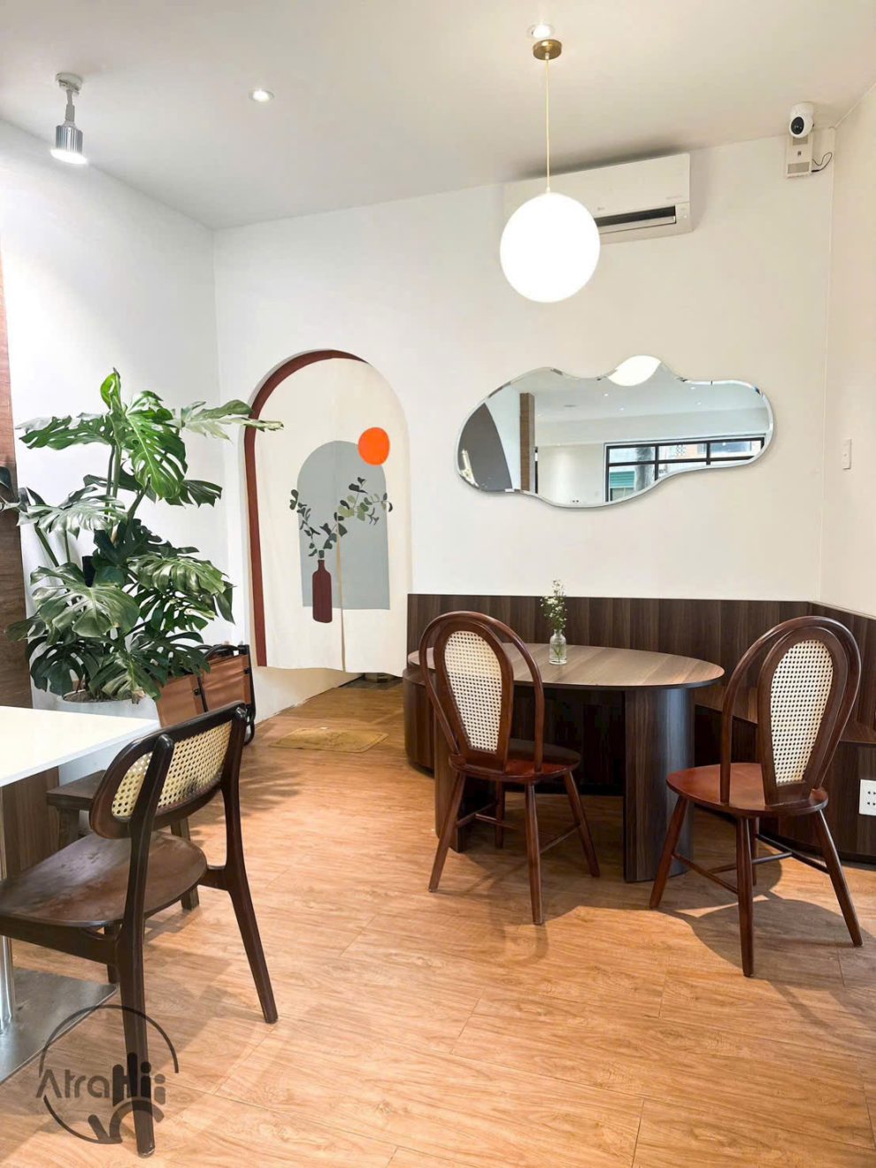 Quán được thiết kế theo phong cách tối giản, kiểu Nhật, tôn vinh vẻ đẹp của sự giản dị và tinh tế (Wabi-Sabi).