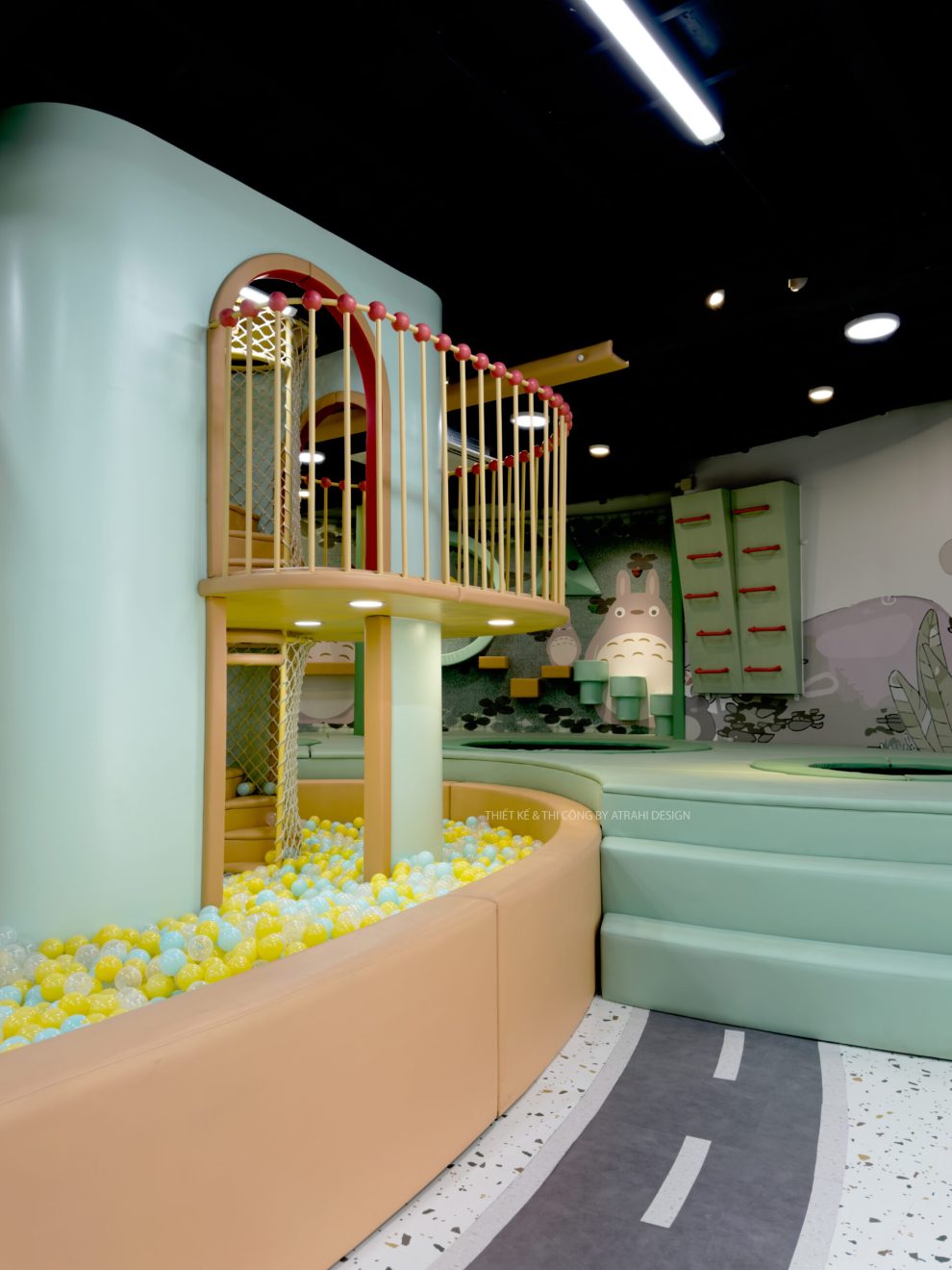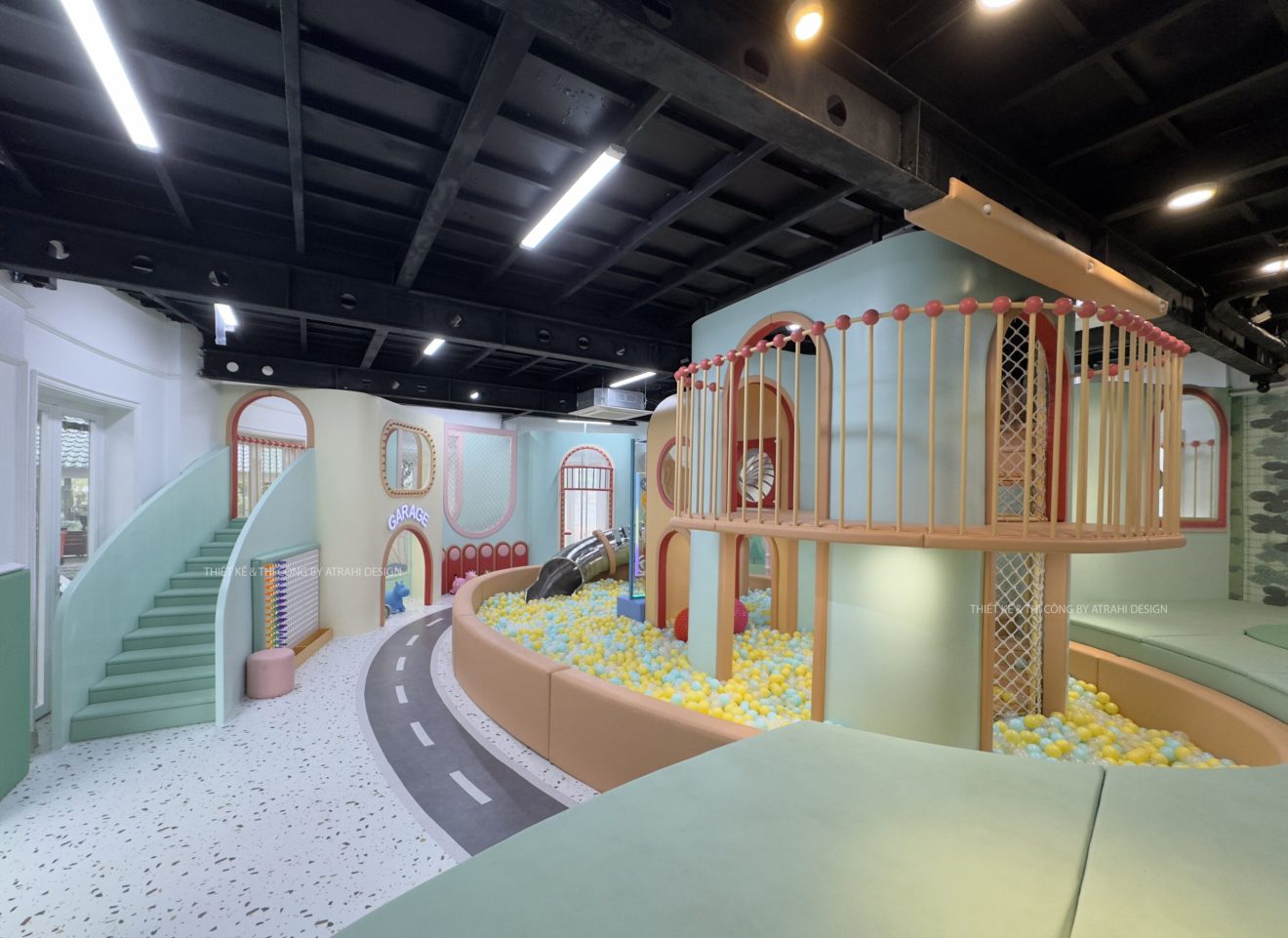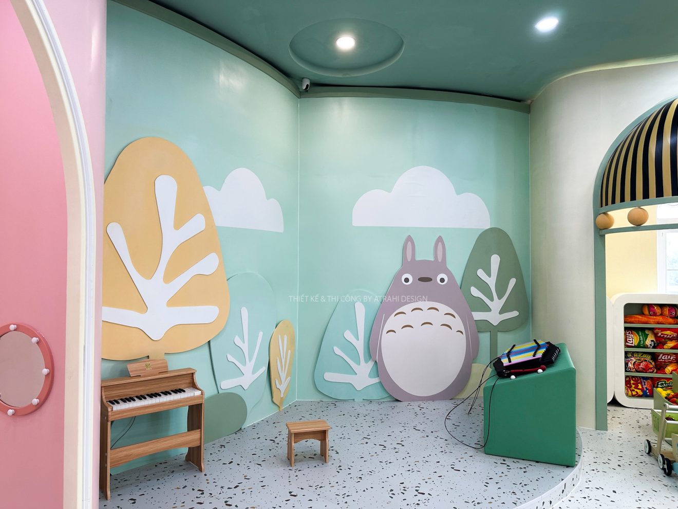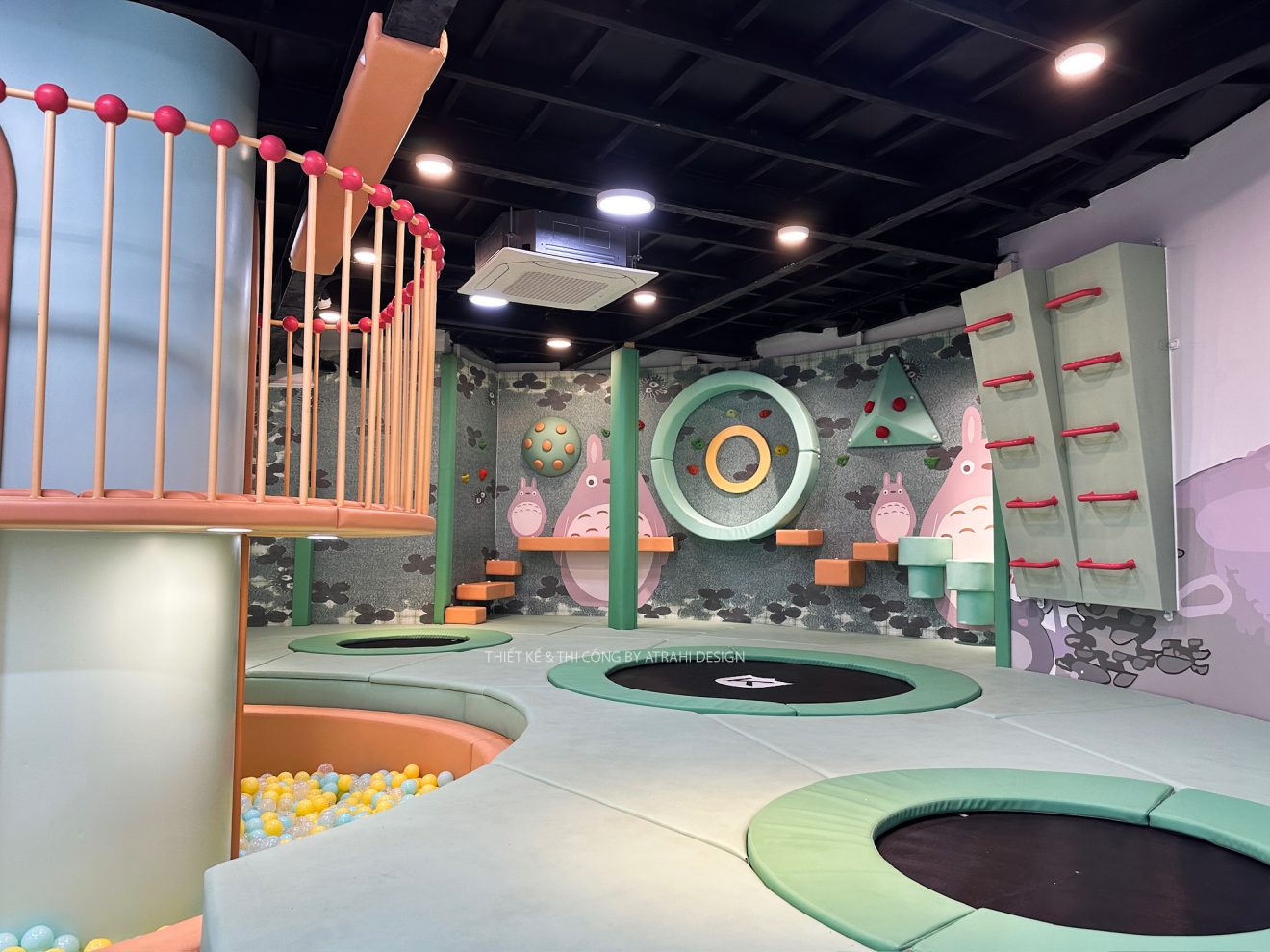 Dự án Ngọc Phát Kidsplay Café là một minh chứng sống động cho tầm nhìn thiết kế hài hòa giữa nhu cầu thư giãn của phụ huynh và thế giới sáng tạo, an toàn dành cho trẻ em. Với diện tích 230 m² tại Biên Hòa (Đồng Nai), Atrahi Design đã khéo léo xây dựng một không gian mang cảm hứng từ Totoro và làng thần tiên – một điểm chạm giữa tuổi thơ hoạt hình và thực tại tinh tế. Các chủ đầu tư muốn tìm hiểu thêm về các mô hình khác của Atrahi có thể liên hệ với chúng tôi qua Hotline: 0909 728 761 để được tư vấn cũng như khái quát về chi phí thiết kế khu vui chơi 🌿.