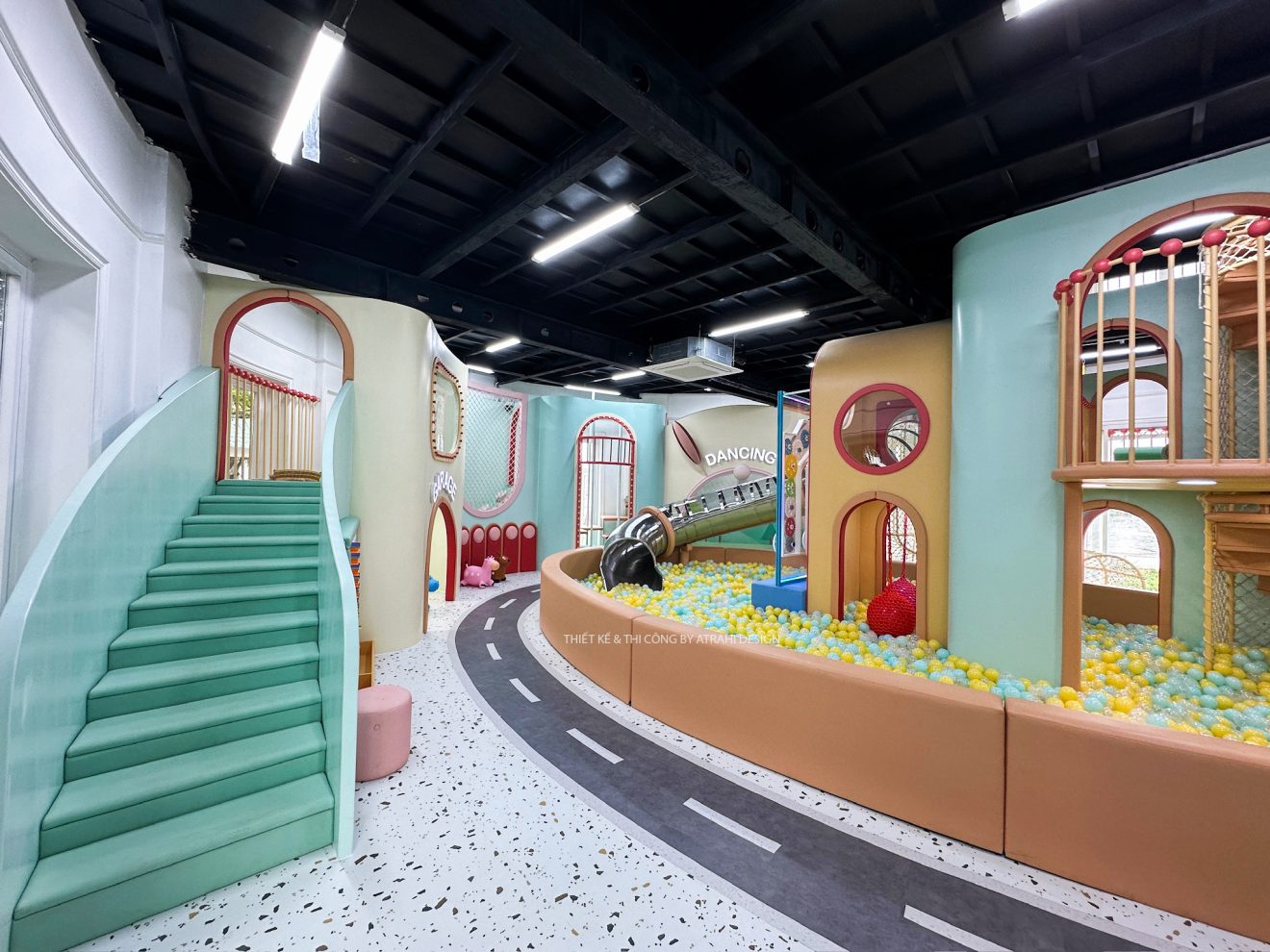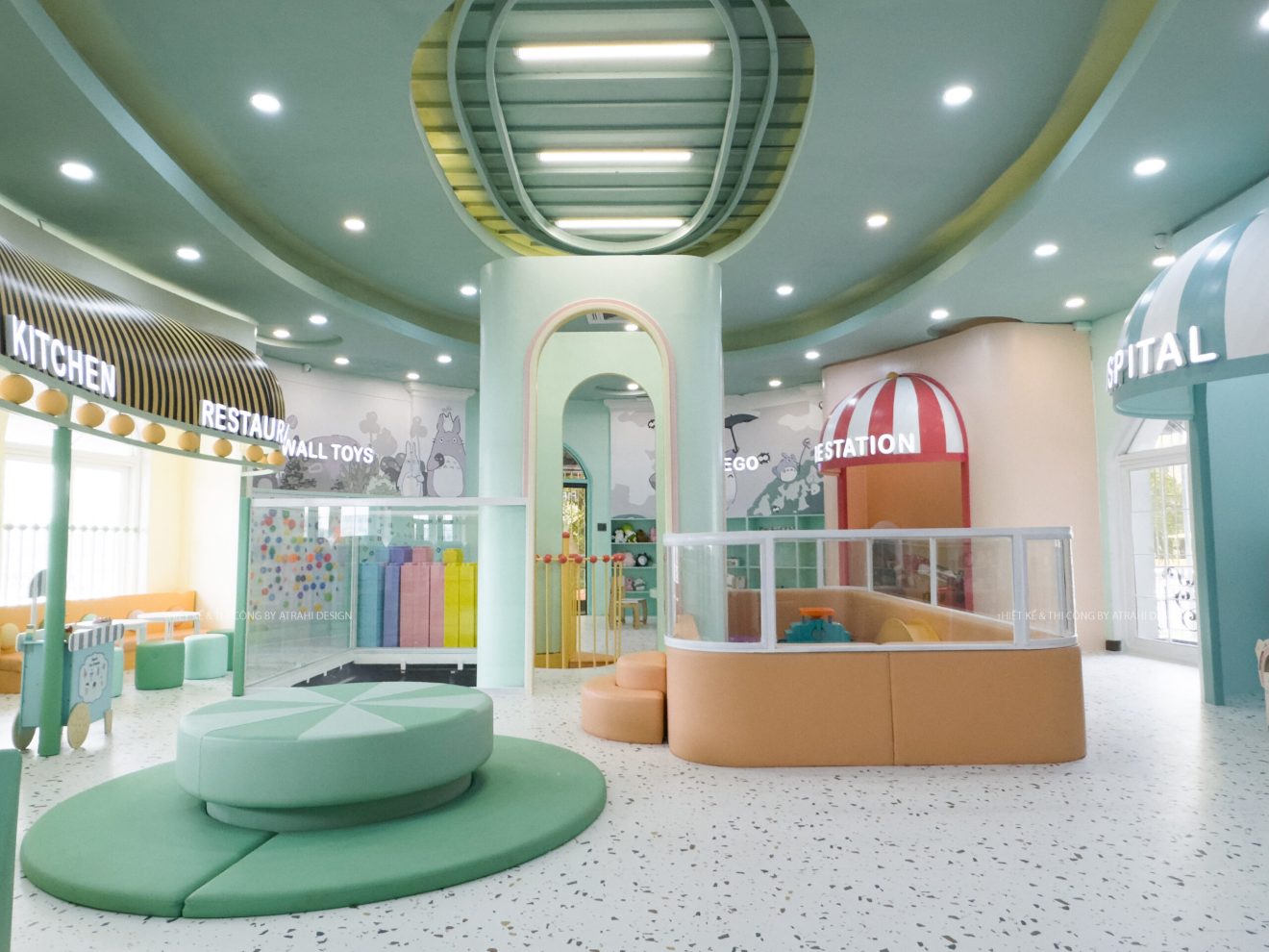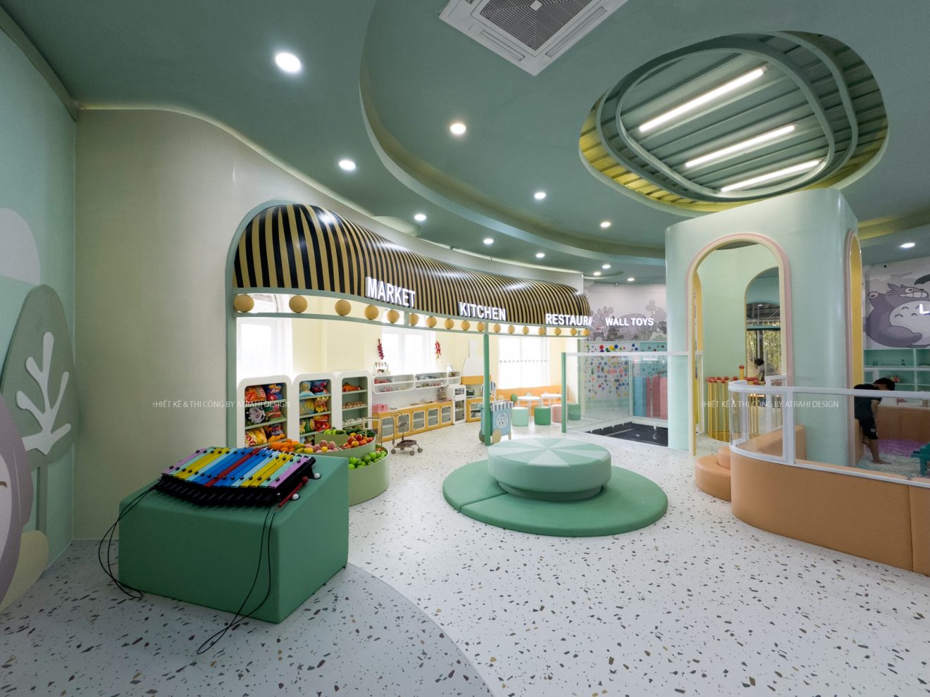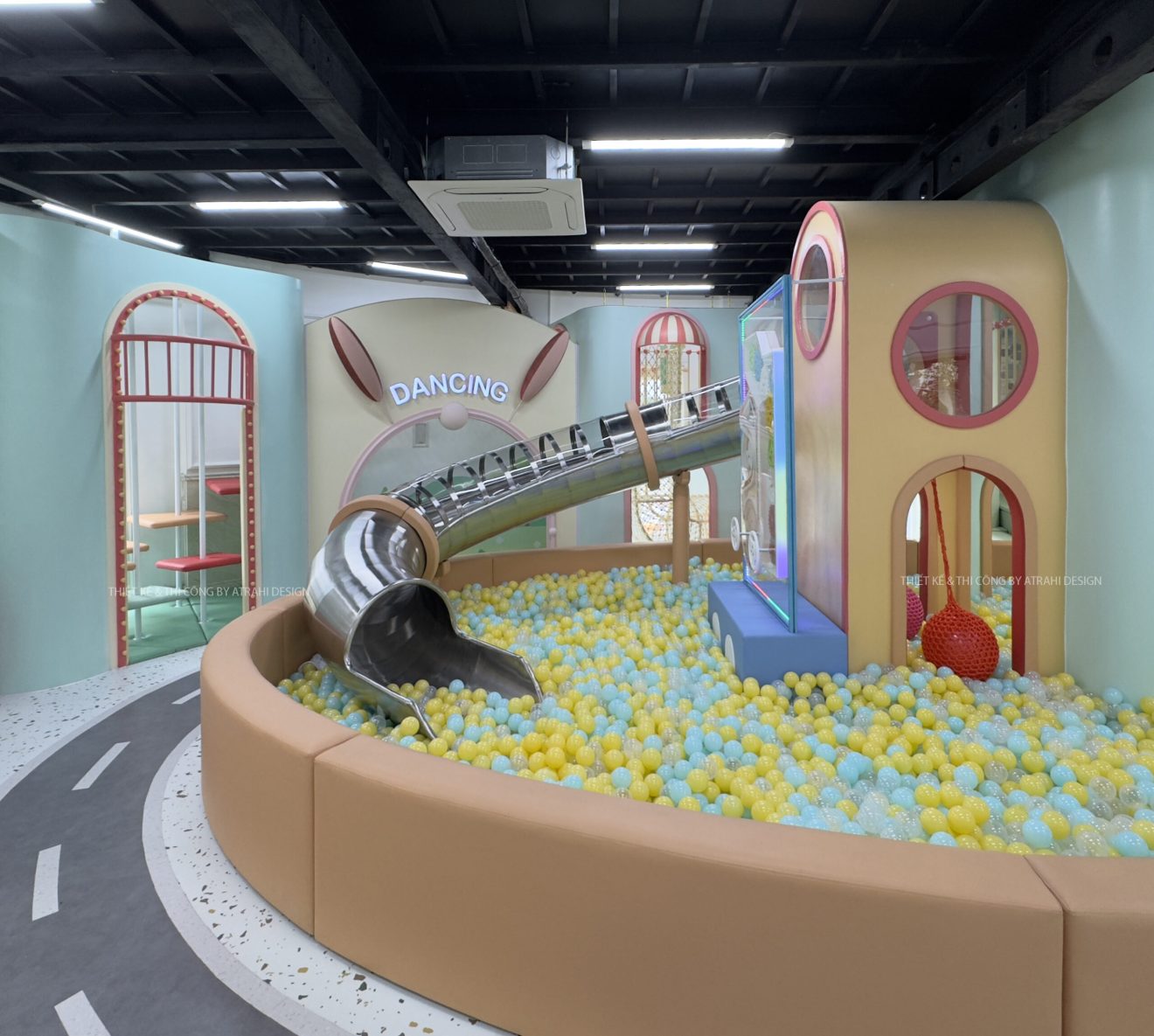 Dự án Ngọc Phát Kidsplay Café là một minh chứng sống động cho tầm nhìn thiết kế hài hòa giữa nhu cầu thư giãn của phụ huynh và thế giới sáng tạo, an toàn dành cho trẻ em. Với diện tích 230 m² tại Biên Hòa (Đồng Nai), Atrahi Design đã khéo léo xây dựng một không gian mang cảm hứng từ Totoro và làng thần tiên – một điểm chạm giữa tuổi thơ hoạt hình và thực tại tinh tế. Các chủ đầu tư muốn tìm hiểu thêm về các mô hình khác của Atrahi có thể liên hệ với chúng tôi qua Hotline: 0909 728 761 để được tư vấn cũng như khái quát về chi phí thiết kế khu vui chơi 🌿.