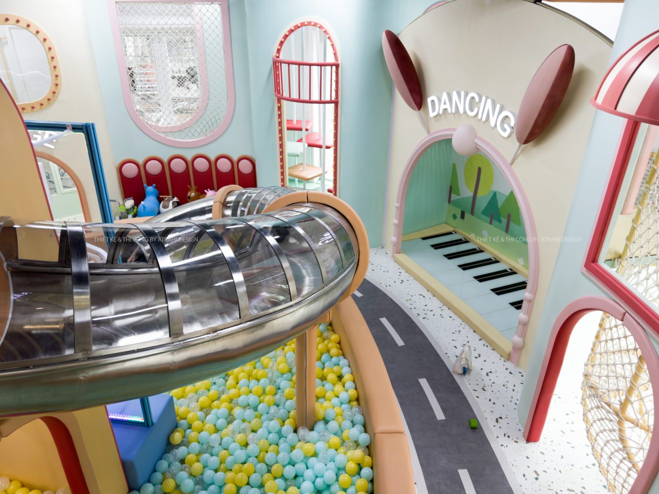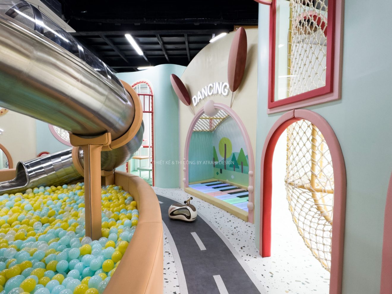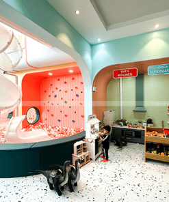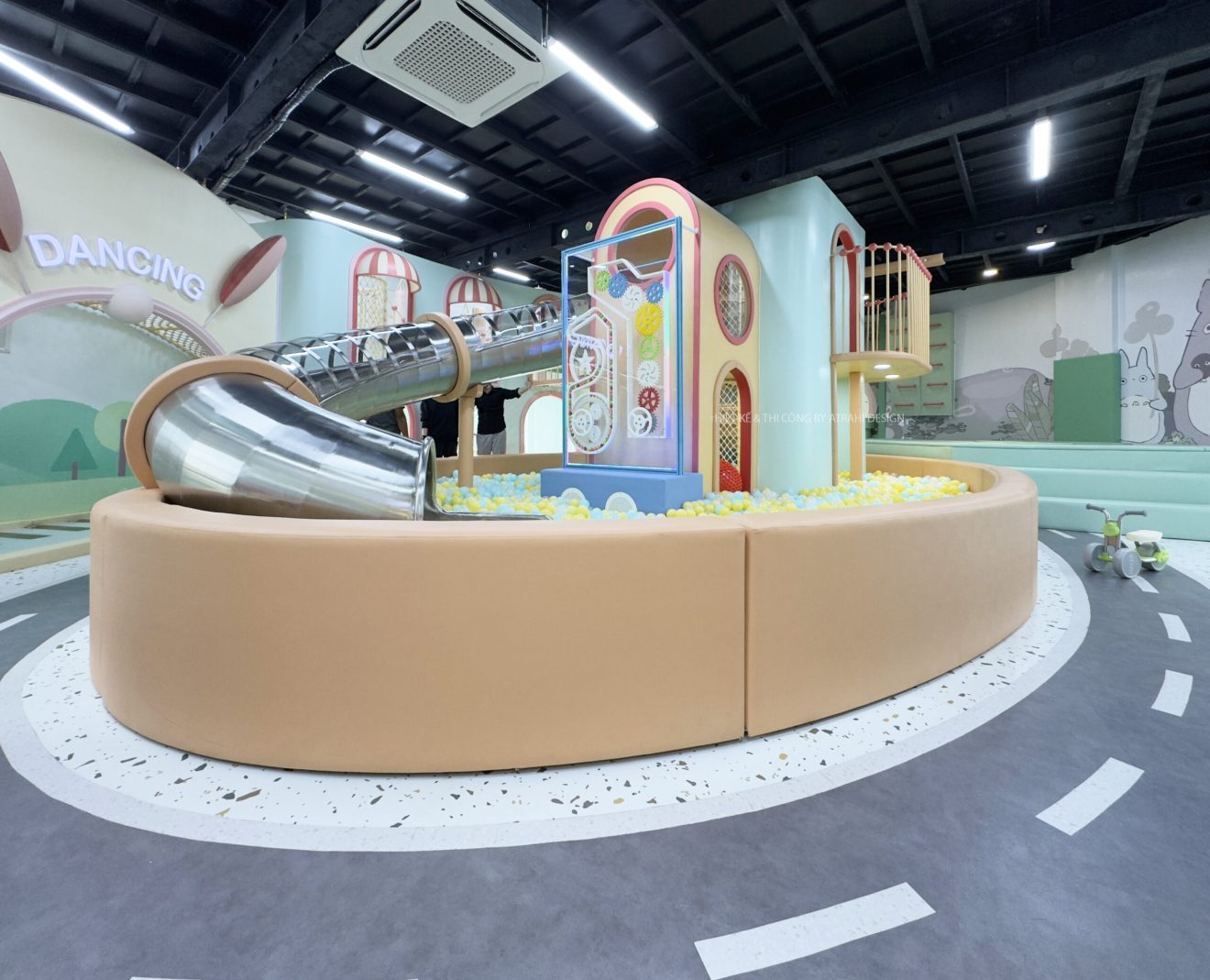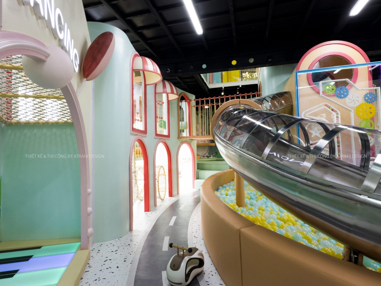 Dự án Ngọc Phát Kidsplay Café là một minh chứng sống động cho tầm nhìn thiết kế hài hòa giữa nhu cầu thư giãn của phụ huynh và thế giới sáng tạo, an toàn dành cho trẻ em. Với diện tích 230 m² tại Biên Hòa (Đồng Nai), Atrahi Design đã khéo léo xây dựng một không gian mang cảm hứng từ Totoro và làng thần tiên – một điểm chạm giữa tuổi thơ hoạt hình và thực tại tinh tế. Các chủ đầu tư muốn tìm hiểu thêm về các mô hình khác của Atrahi có thể liên hệ với chúng tôi qua Hotline: 0909 728 761 để được tư vấn cũng như khái quát về chi phí thiết kế khu vui chơi 🌿.