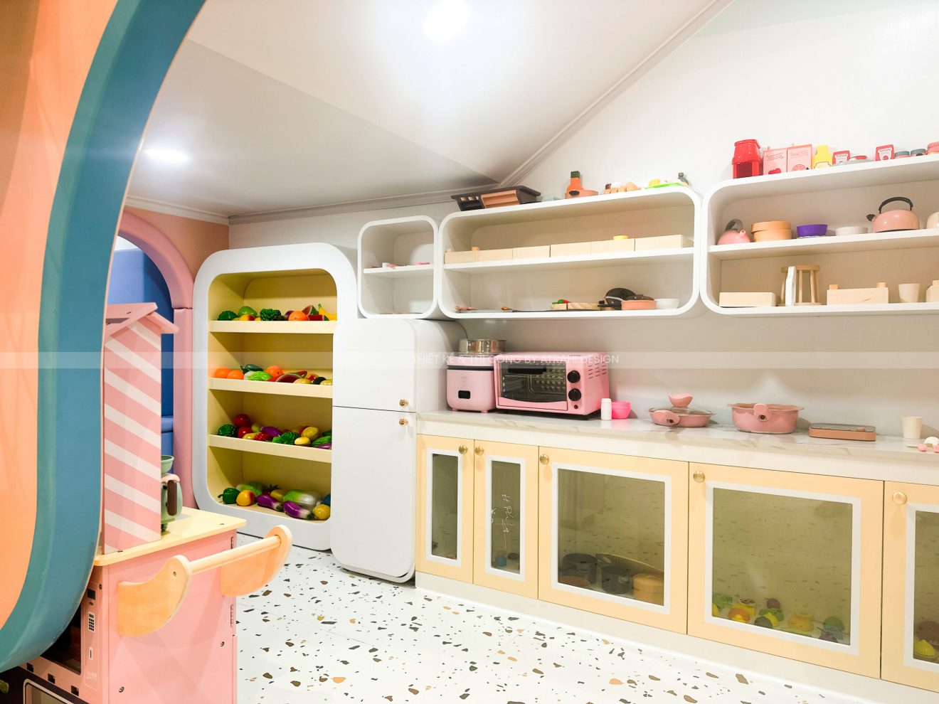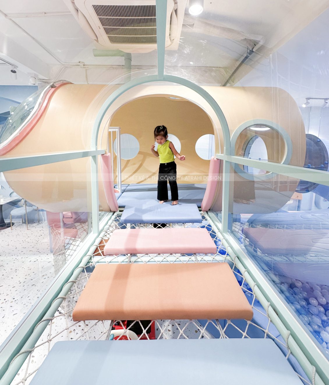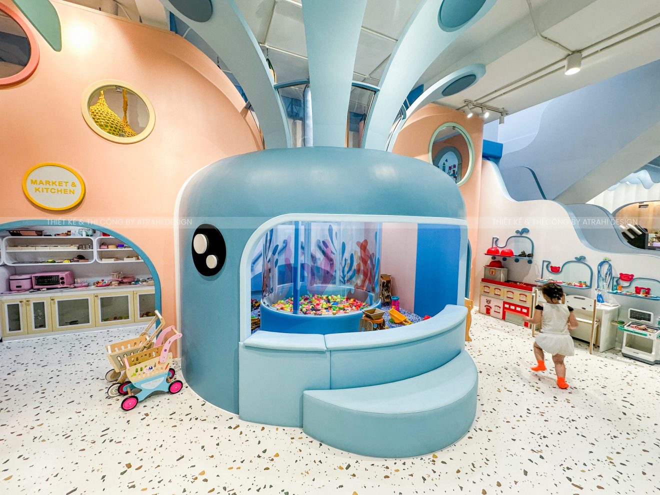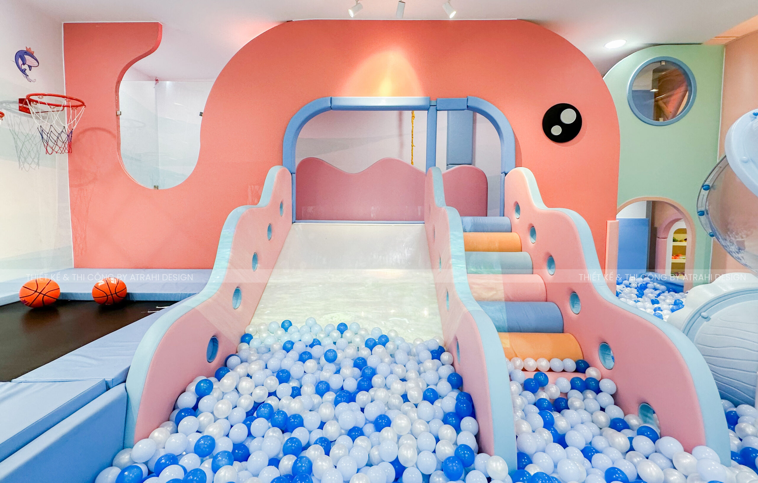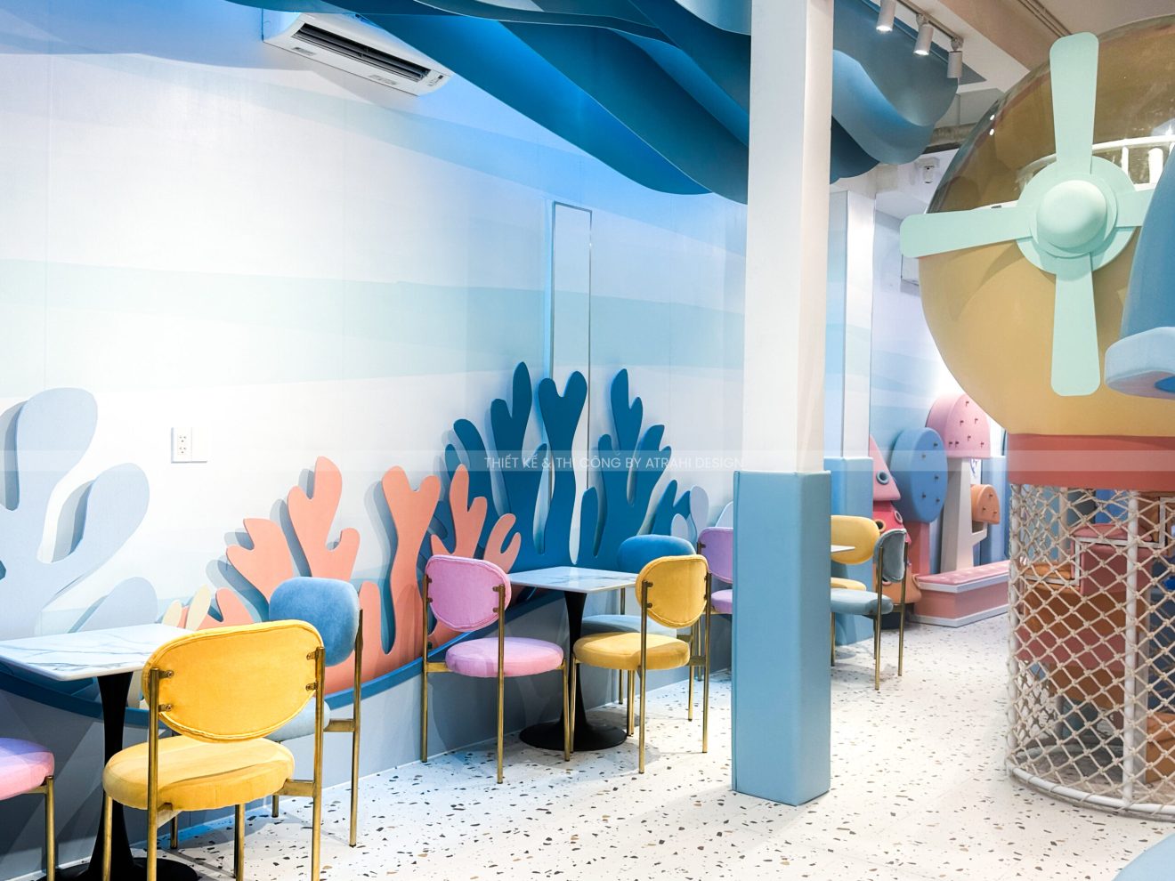 Dự án TiGold Kids Cafe là minh chứng rõ nét cho khả năng thiết kế chuyên nghiệp và sáng tạo của Atrahi Design trong mảng quán cà phê kết hợp khu vui chơi trẻ em. Với diện tích rộng 200 m² tại vị trí chiến lược ở Quận Gò Vấp, không gian được biến hóa thành một “đại dương thu nhỏ” đầy màu sắc — sử dụng tông xanh dương và cam, kết hợp họa tiết san hô — tạo nên trải nghiệm sống động, hấp dẫn cho trẻ em. Các chủ đầu tư muốn tìm hiểu thêm về các mô hình khác của Atrahi có thể liên hệ với chúng tôi qua Hotline: 0909 728 761 để được tư vấn cũng như khái quát về chi phí thiết kế khu vui chơi 🌿.