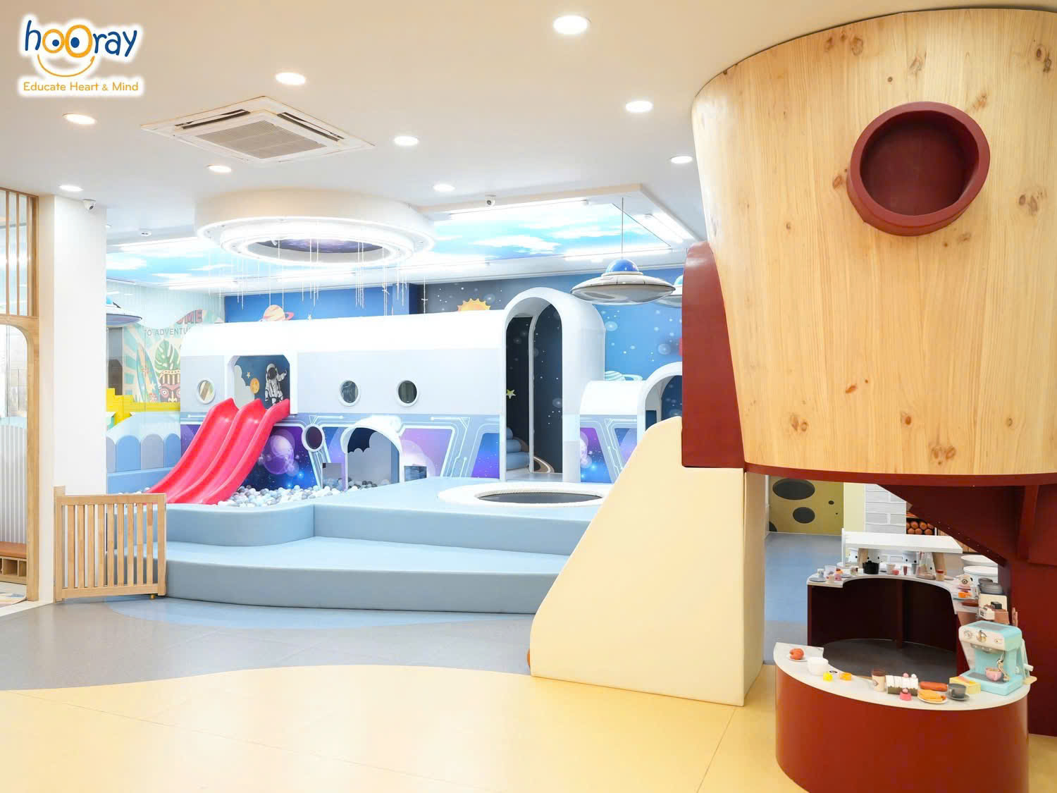 💐Trường mầm non Hooray 💐là một ngôi trường vô cùng quen thuộc đối với nhiều gia đình tại khu vực trung tâm quận 3 HCM. Ngôi trường thu hút được nhiều cha mẹ lựa chọn nơi học cho con không chỉ nhờ chương trình học song ngữ phù hợp với từng đối tượng, chế độ dinh dưỡng hợp lý, học phí phải chăng…. Mà còn thu hút bởi một không gian trường rộng rãi thoáng mát với nhiều không gian ấn tượng để các con có thể vui chơi và học tập.Ngôi trường được ra đời dựa trên ý tưởng về vũ trụ bao la giúp các con có thể khám phá nhiều điều thú vị về cuộc sống, về vũ trụ ngay trong ngôi trường này.